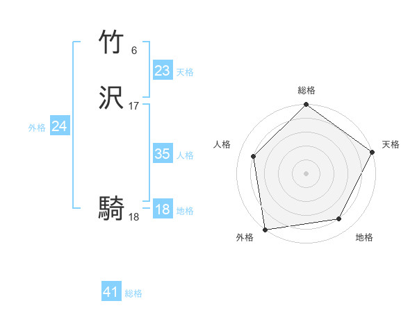 竹沢 騎さんの総格は41画の5点!