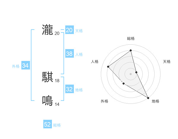 瀧 騏鳴さんを姓名の画数から五運を鑑定