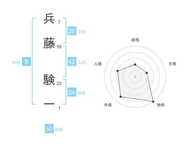 兵藤 験一さんの総格は50画の2点!
