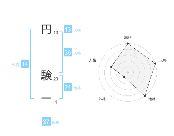 円 験一さんの総格は37画の5点!