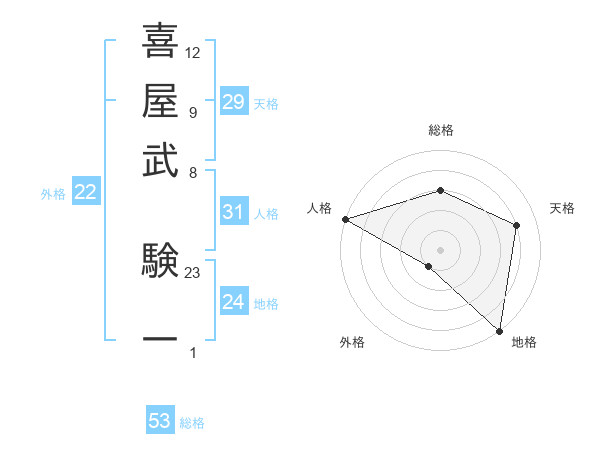 喜屋武 験一さんを姓名の画数から五運を鑑定