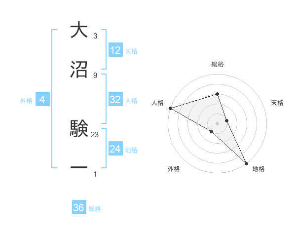大沼 験一さんの総格は36画の3点!
