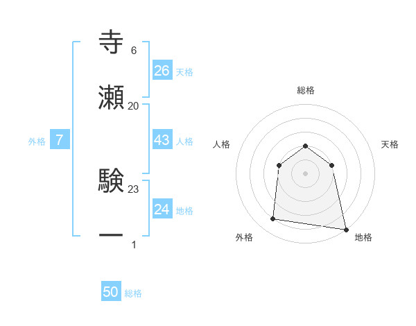 寺瀬 験一さんを姓名の画数から五運を鑑定