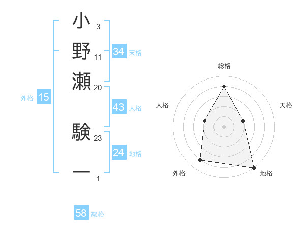 小野瀬 験一さんの総格は58画の4点!