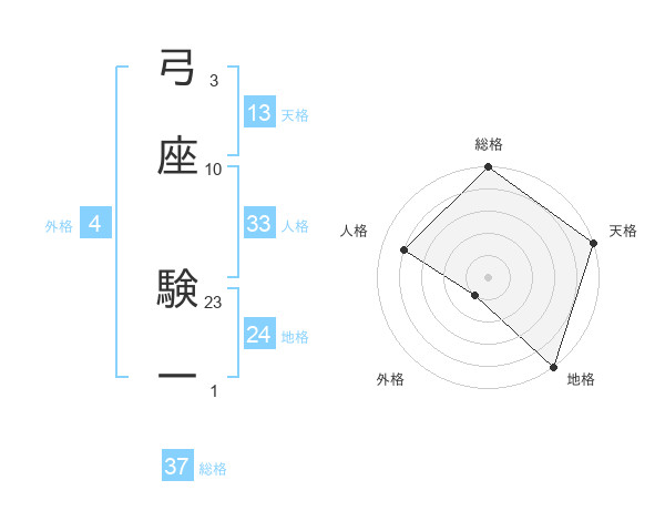 弓座 験一さんの総格は37画の5点!