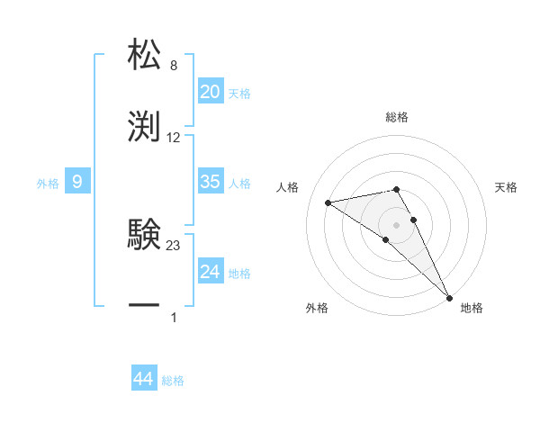 松渕 験一さんの総格は44画の2点!