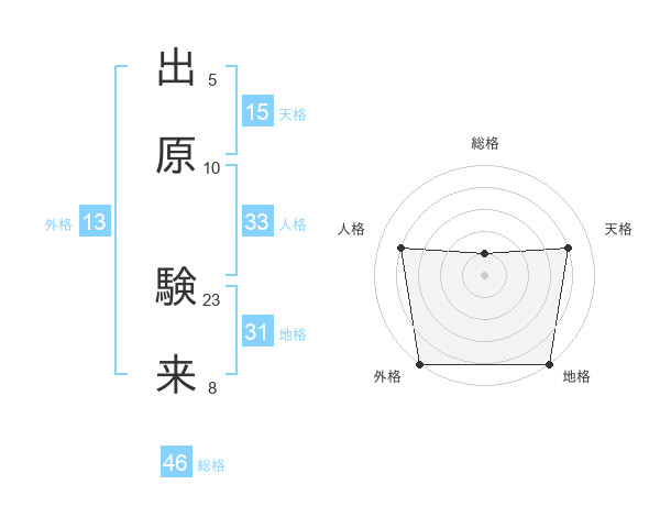 出原 験来さんの外格は13画の5点!