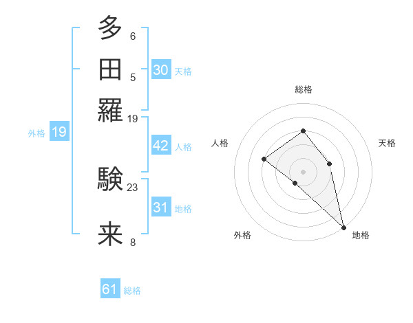 多田羅 験来さんを姓名の画数から五運を鑑定