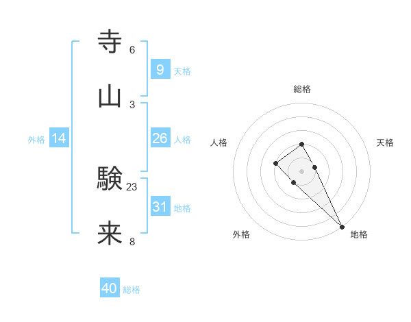 寺山 験来さんの総格は40画の2点!