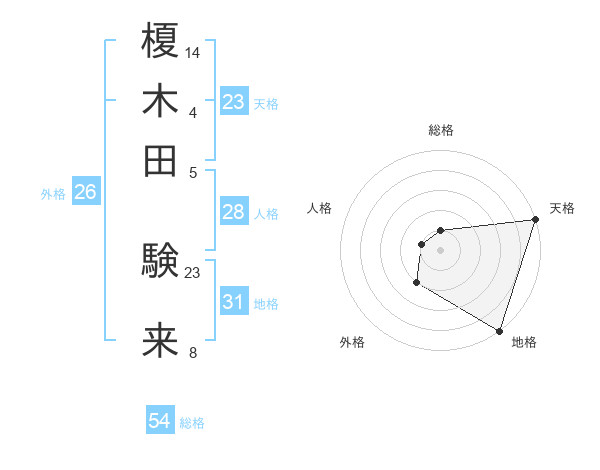 榎木田 験来さんを姓名の画数から五運を鑑定