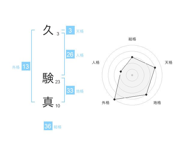 久 験真さんの外格は13画の5点!