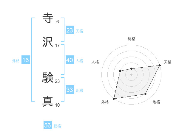 寺沢 験真さんを姓名の画数から五運を鑑定
