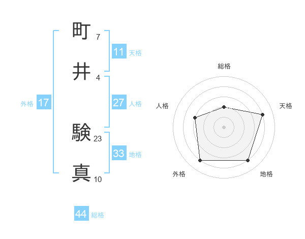 町井 験真さんの総格は44画の2点!