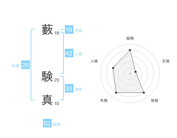 藪 験真さんの総格は52画の4点!