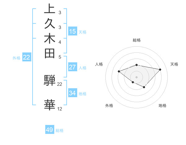 上久木田 騨華さんの総格は49画の2点!