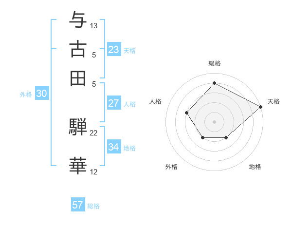 与古田 騨華さんを姓名の画数から五運を鑑定
