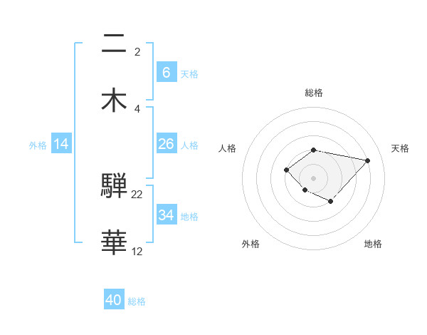 二木 騨華さんの総格は40画の2点!