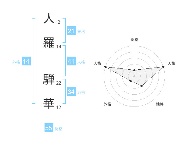人羅 騨華さんを姓名の画数から五運を鑑定