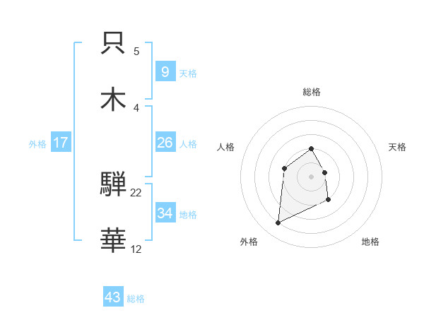 只木 騨華さんの総格は43画の2点!