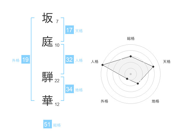 坂庭 騨華さんの総格は51画の3点!