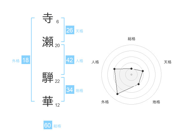 寺瀬 騨華さんの総格は60画の1点!