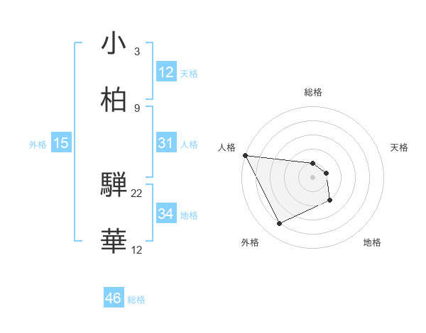 小柏 騨華さんの天格は12画の1点!