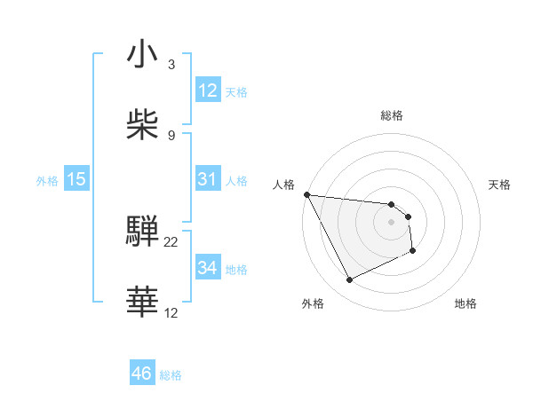 小柴 騨華さんの総格は46画の1点!