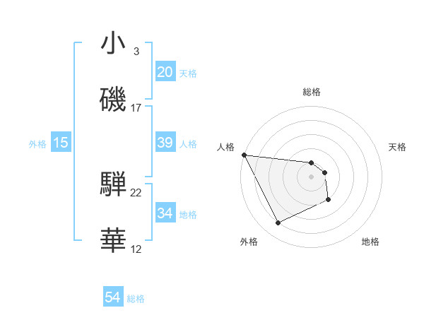 小磯 騨華さんを姓名の画数から五運を鑑定