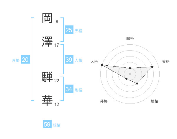 岡澤 騨華さんの総格は59画の1点!