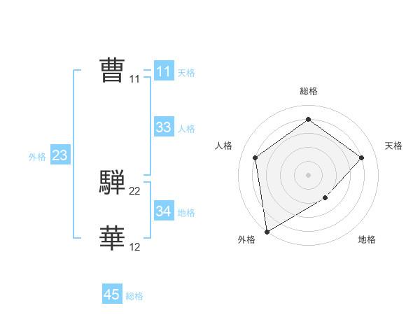 曹 騨華さんの総格は45画の4点!