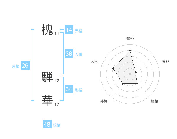 槐 騨華さんの総格は48画の4点!