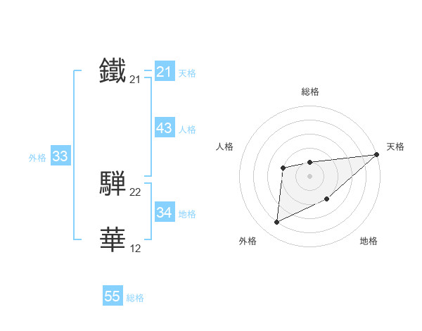 鐵 騨華さんを姓名の画数から五運を鑑定