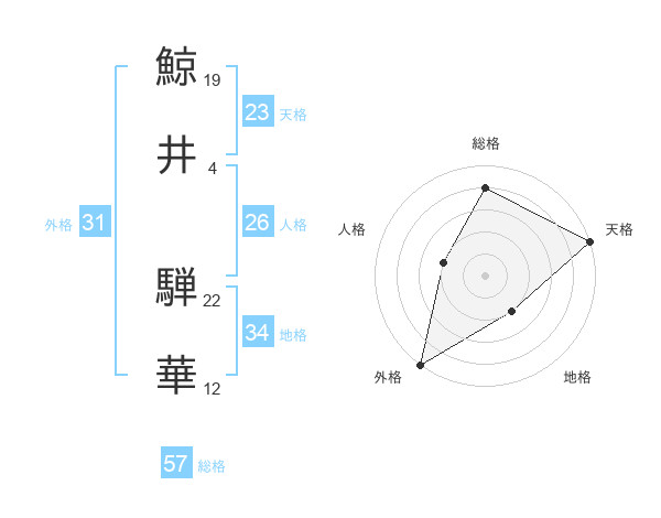 鯨井 騨華さんを姓名の画数から五運を鑑定