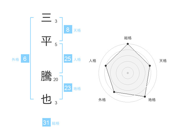 三平 騰也さんの総格は31画の5点!