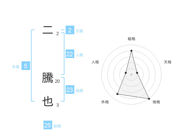 二 騰也さんの総格は25画の4点!