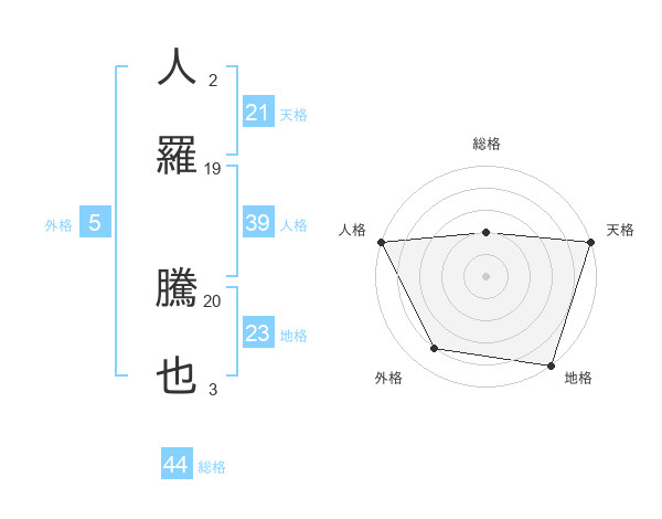 人羅 騰也さんを姓名の画数から五運を鑑定