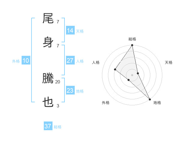 尾身 騰也さんを姓名の画数から五運を鑑定