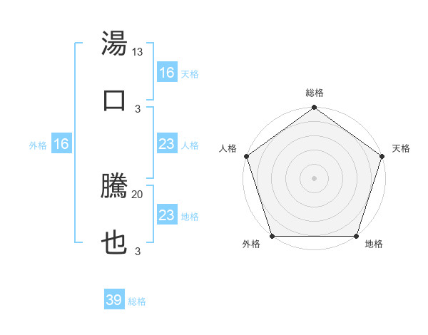 湯口 騰也さんの総格は39画の5点!