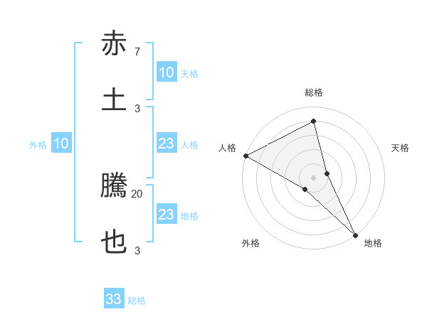 赤土 騰也さんを姓名の画数から五運を鑑定