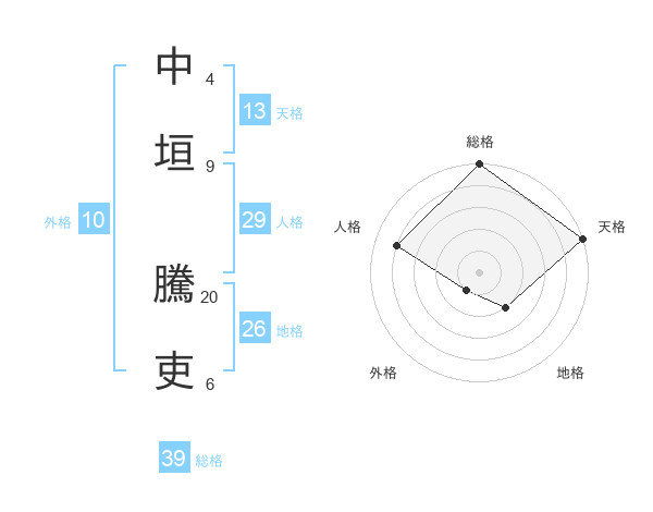 中垣 騰吏さんの天格は13画の5点!