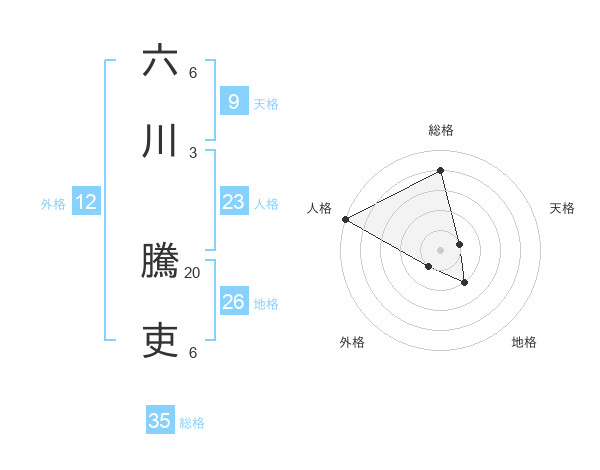 六川 騰吏さんを姓名の画数から五運を鑑定