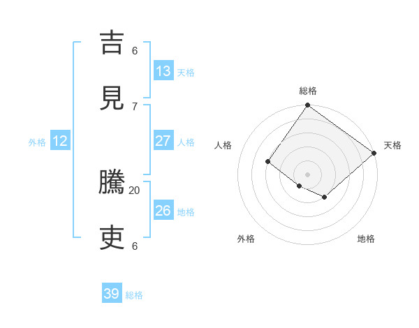 吉見 騰吏さんの天格は13画の5点!
