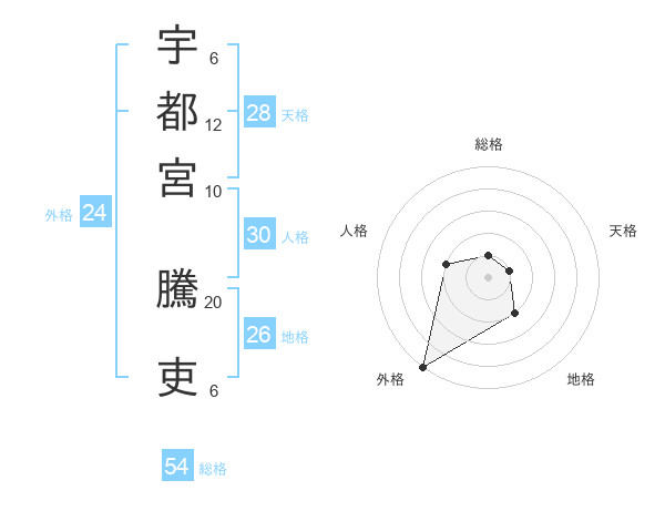 宇都宮 騰吏さんを姓名の画数から五運を鑑定