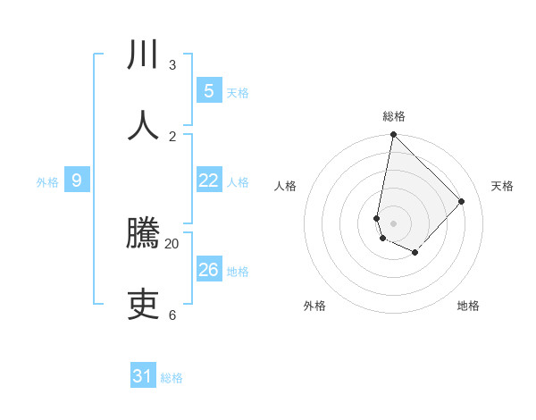 川人 騰吏さんの総格は31画の5点!