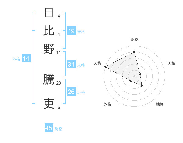 日比野 騰吏さんの総格は45画の4点!