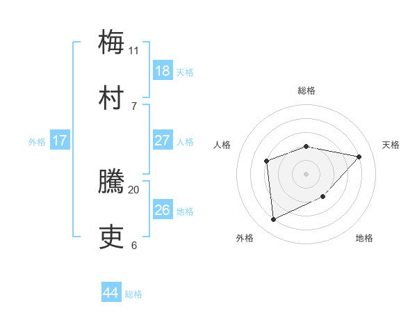 梅村 騰吏さんを姓名の画数から五運を鑑定