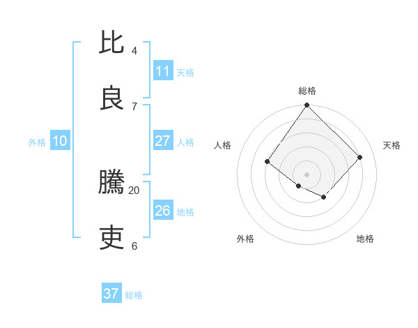 比良 騰吏さんの総格は37画の5点!
