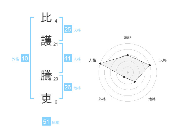 比護 騰吏さんの総格は51画の3点!