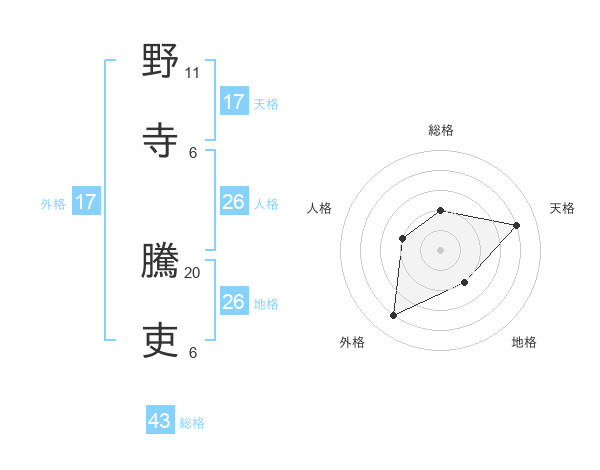 野寺 騰吏さんを姓名の画数から五運を鑑定