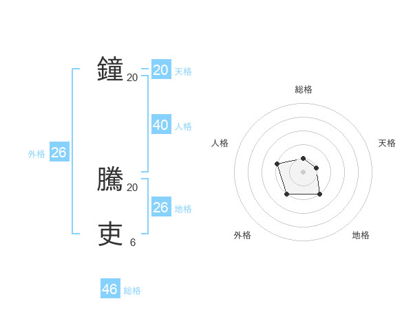 鐘 騰吏さんの地格は26画の2点!
